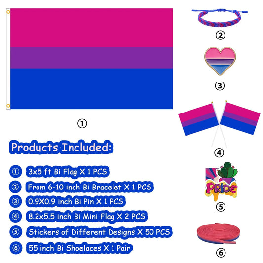 Great Value Bundle | BI Pride | Includes: Flag, Bracelet, 50 Stickers, Pin, 2 Hand Flags, Shoelaces