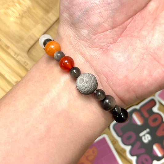 Pride Bracelet | Lesbian | Cat's Eye Glaze & Natural Agate Carved Heart