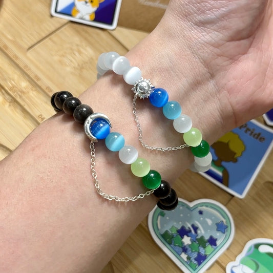 Pride Bracelet | Aro/Ace/AroAce| Sun & Moon/Silver (Color)