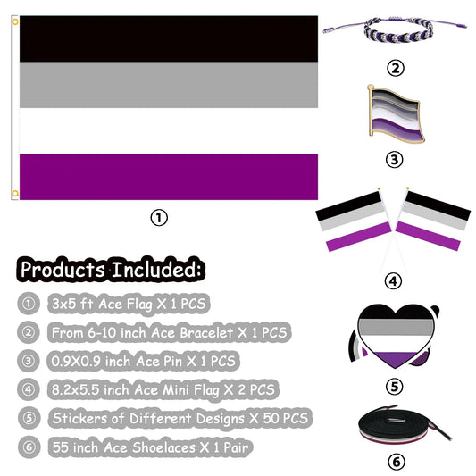 Great Value Bundle | ACE Pride | Includes: Flag, Bracelet, 50 Stickers, Pin, 2 Hand Flags, Shoelaces